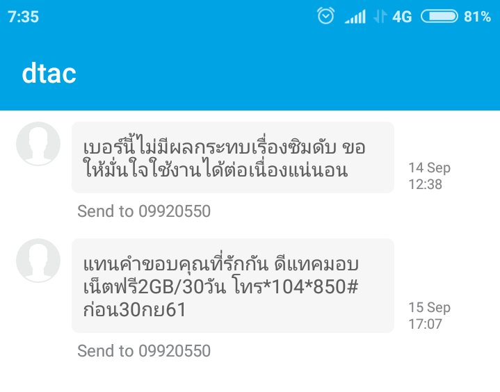 คือหมายเลขโทรศัพท์ของคุณพ่อ 0815395xxx ใช้ Dtac มาสิบกว่าปี ช่วงหลังๆ ตั้งแต่เริ่มพัฒนา Trinet สัญญาณที่ใช้อยู่ที่บ้านไม่ดี ขาดๆ หายๆ โทรติดบ้างไม่ติดบ้าง ผมจึงแนะนำให้คุณพ่อ กับคุณแม่ย้ายค่ายเบอร์เด
