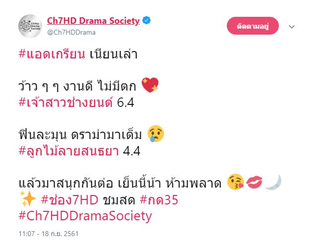 แอดเกรียนเนียนเล่า เรตติ้งละครช่อง7มาจ้า