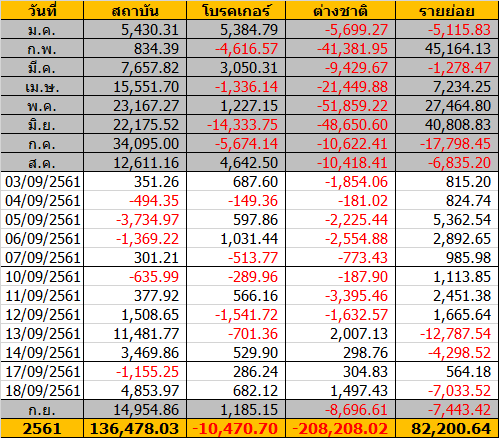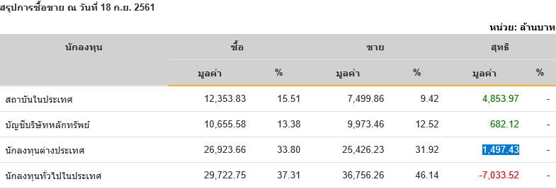 Sinthorn Summary 18/9/2561 : ต่างชาติซื้อสุทธิ 1,497.43 ลบ.