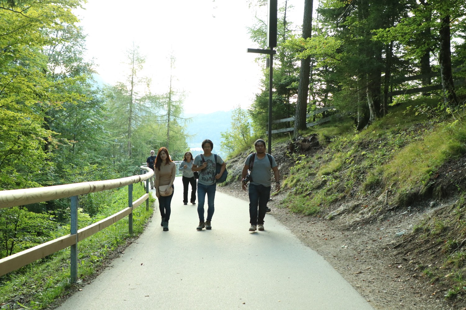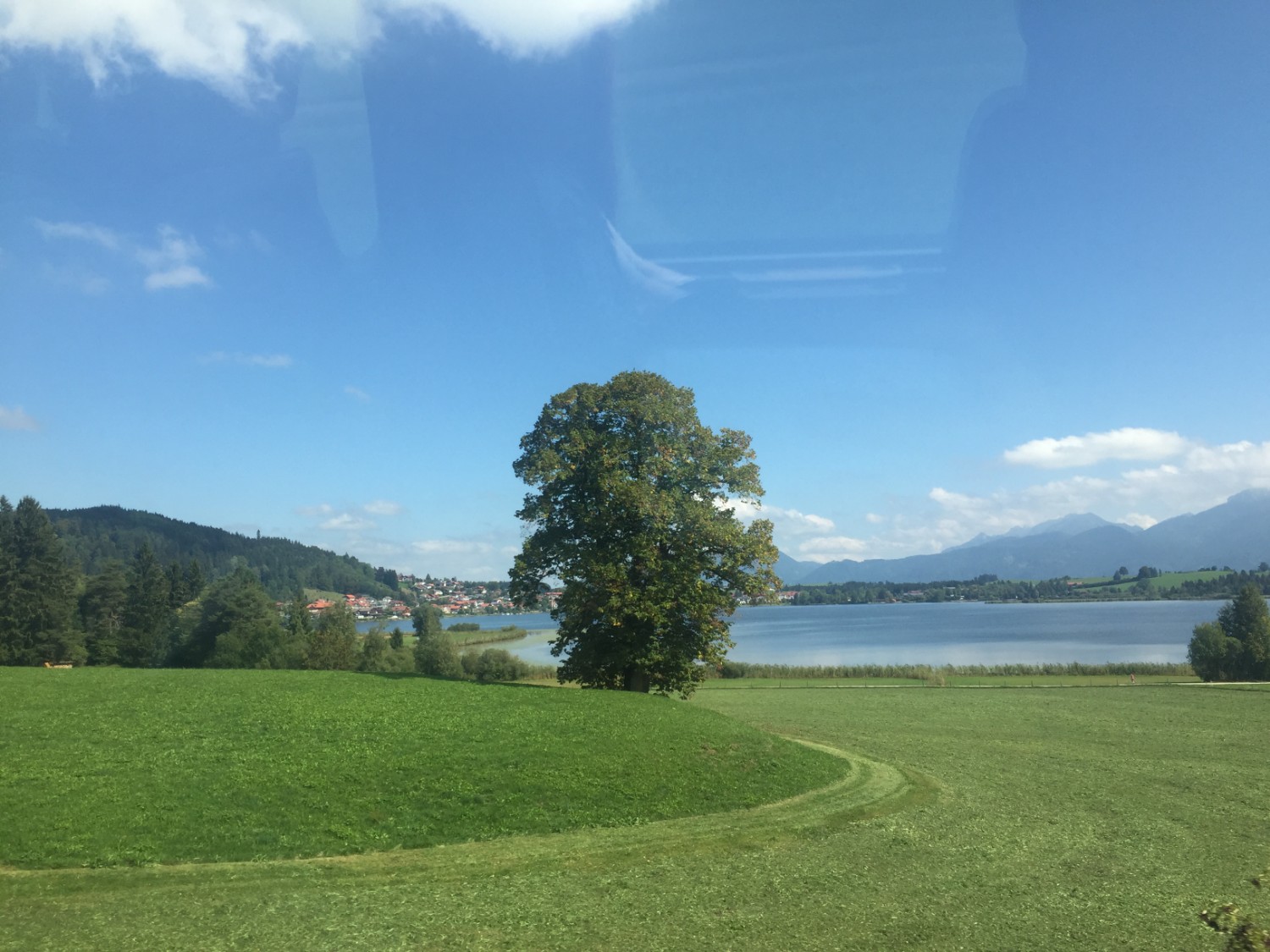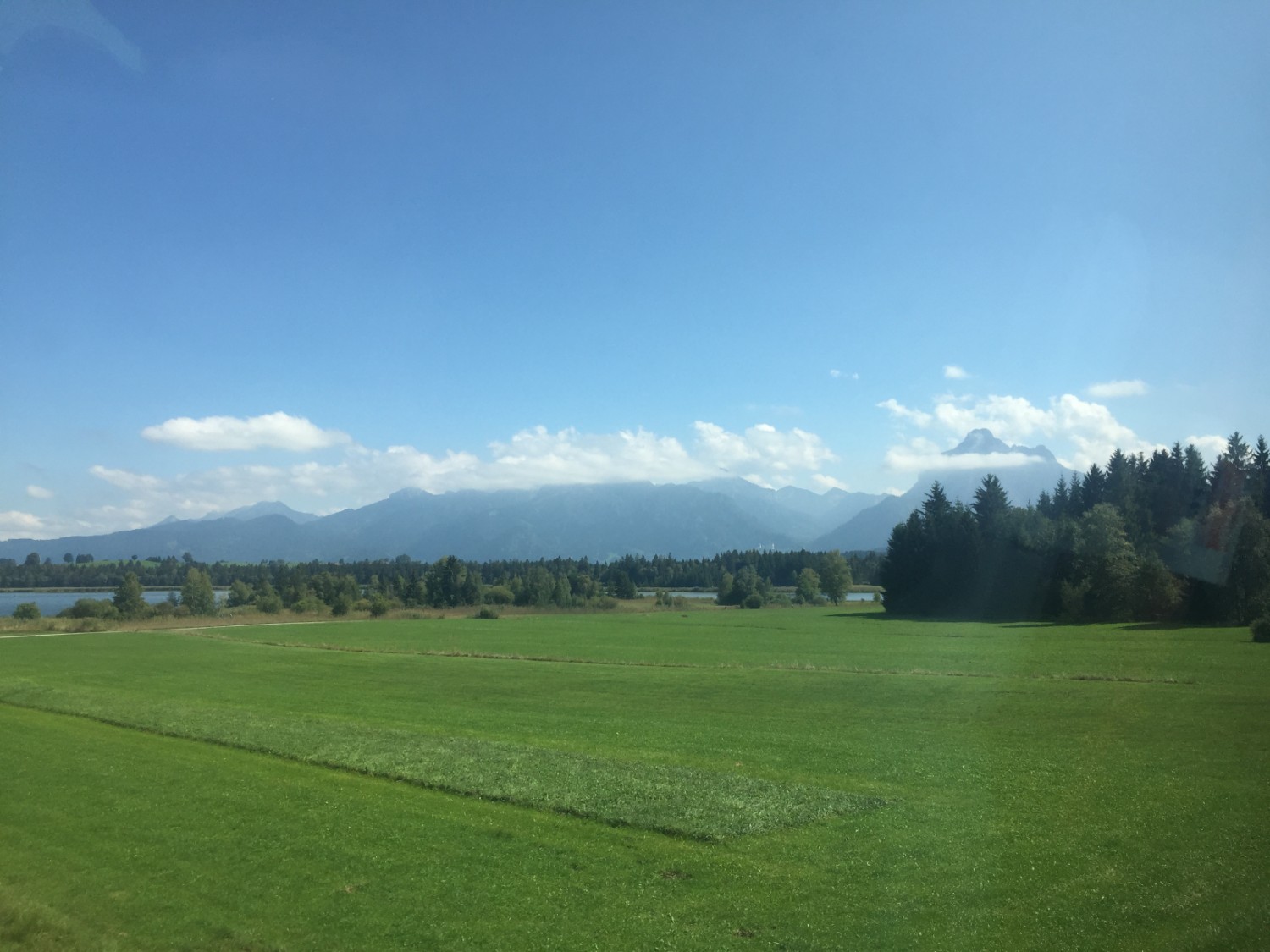โดยรถไฟ regional bahn เราซื้อตั๋วเหมา 4 คนในราคา 43 EUR(ออยโร) ราว 1,600 บาท ตกคนละ 400 บาทค่ะ เป็นตั๋ววัน ก็ใช้เวลาประมาณ 2.30 ชม. จะว่านานก็นานอยู่ แต่มีปัจจัยที่ทำให้ดูว่าไม่นานนั่นคือ วิวข้างทางจากหน้าต่างรถไฟ เราและน้องชายตื่นเต้นมากเวอร์ ร้องอู้หู ทุก 50 เมตร สักพักน้องชายสะกิดอีกละ เจ้ๆ เจ้ดูนี่ดิ แบบหูยยยยยย มันคือสวยมากจริงๆค่ะ เหมือนในหนังคาวบอยยังไงอย่างงั้น เพราะหลายๆบ้านเลี้ยงม้า เลี้ยงวัว ปล่อยให้สัตว์เล็มหญ้ากันอย่างอิสระในอุณหภูมิที่พอเหมาะ เห็นแล้วก็อดยิ้มมุมปากไม่ได้เลยค่ะ หญ้าสีเขียวสดที่ตัดกับฉากหลังสีฟ้าเข้มๆของท้องฟ้า เป็นข้างทางที่ช่างเพลินอะไรเช่นนี้