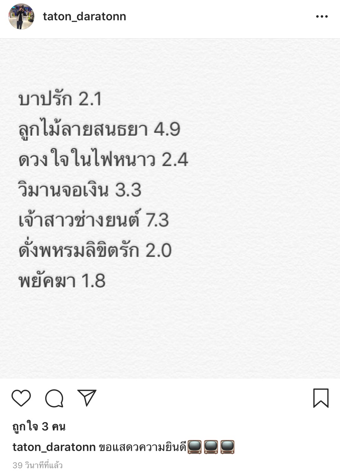เครดิตจากไอจี taton_daratonn ยินดีด้วยค่ะ