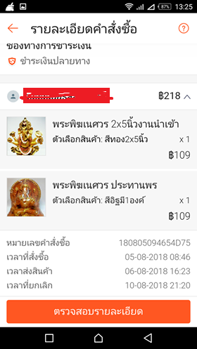 องค์พระพิฆเณศ 2 องค์ ราคา 218 บาท + ค่าส่ง 65 บาท รวมทั้งสิ้น 283 บาท