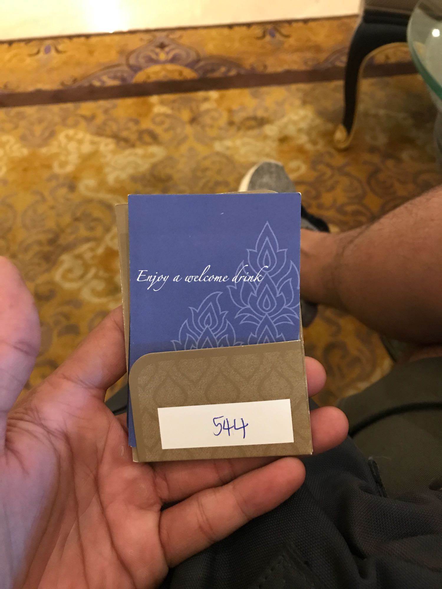 เรารอเช็คอินกันที่ล็อบบี้ ระหว่างนั้น เวลคั้มดิ้งจากดุสิตก็มาเสริฟ เครื่องเย็นๆ กับบรรยากาศอันยิ่งใหญ่ ช่างวิเศษจริงๆ ที่นี่เช็คอิน 15.00 น. น่ะครับ ขอติ่งไว้นิดนึงครับ การเช็คอินที่ดุสิต ธานี หัวหิน ค่อนข้างใช้เวลาพอสมควรน่ะครับ เนื่องจาก ห้องพักมีจำนวน 290 ห้อง