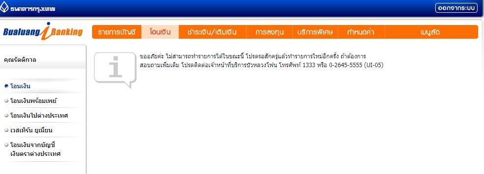 iBanking โอนไม่ได้หลายวันแล้วค่ะ ระบบเป็นอะไรคะ