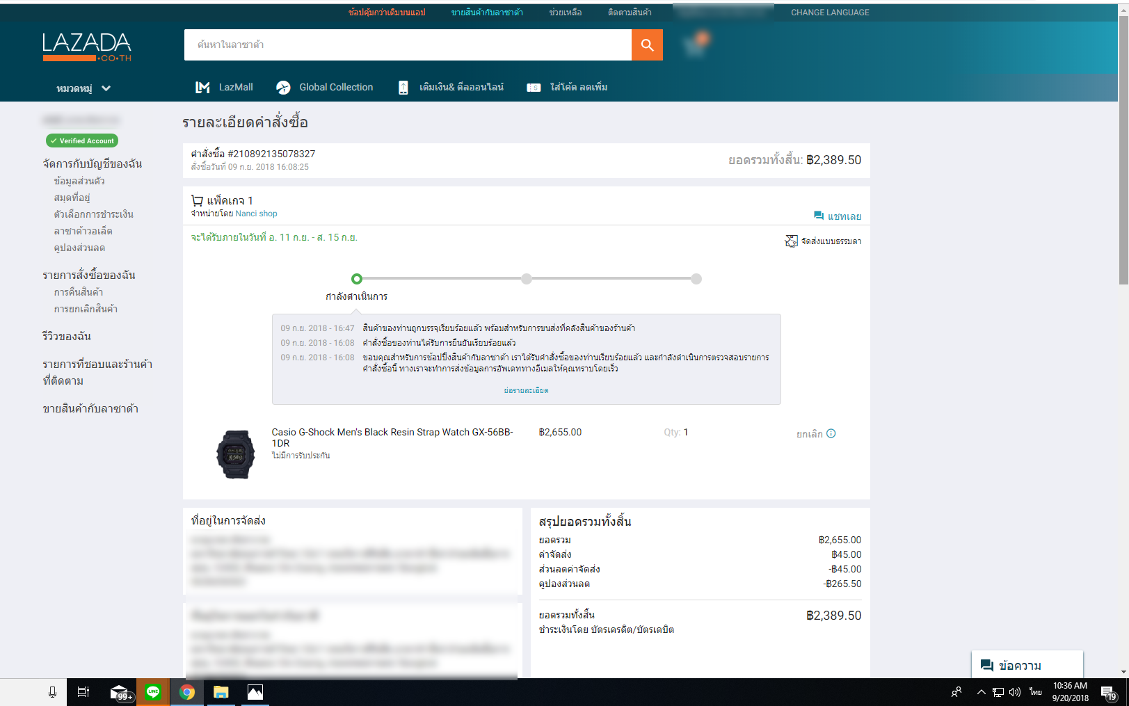สั่งซื้อไปตั้งแต่วันที่ 9 กย 61 และเตรียมตัวรับของ เนื่องจากสถานะเตรียมส่งแล้ว หลังจากรอ แล้วก็รอ จนพิมพ์เข้าไปถามเจ้าหน้าที่ลาซาด้า แจ้งว่าให้รอถึงวันที่ 15 ถ้ายังไม่ได้รับของ จะยกเลิกออเดอร์สั่งซื้อแล้วคืนเงินให้ พอครบกำหนดวันที่ 15 ก็บอกให้รอ ออเดอร์ยกเลิก ในวันที่ 19 พอครบกำหนด วันที่ 19 พิมพ์ไปถามเจ้าหน้าที่ก็ยังไม่ได้คำตอบว่าจะได้เงินคืนเมื่อไร...
