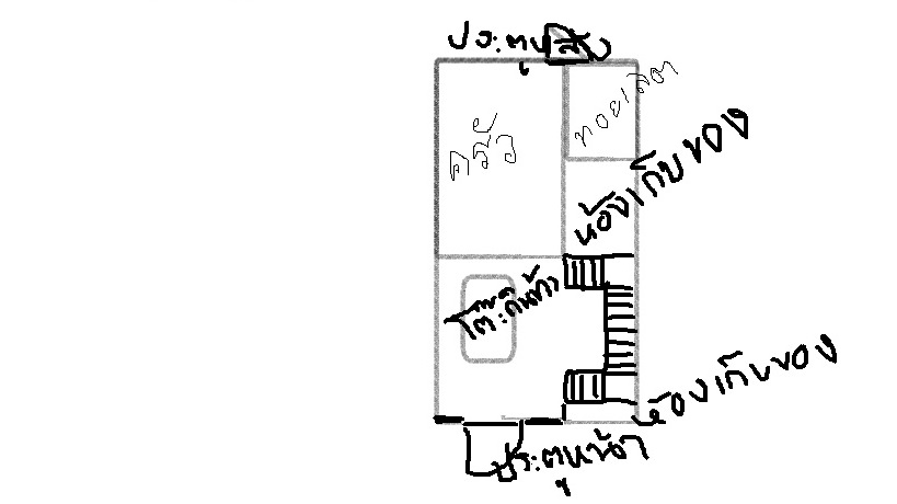บ้านเป็นอาคารพาณิชย์ห้องเดียว แบบมีชั้นลอยค่ะ ห้องนอนพ่อแม่ (ชั้นลอย) อยู่ตำแหน่งเหนือห้องครัว (ชั้นล่าง)พอดี ตามรูปค่ะ ตอนออกแบบกันก็ไม่ได้คิดลึกลงไปถึงจุดนี้ จนมีคนมาทักว่าส้วมขี้ อยู่บนเตาที่ทำอาหา