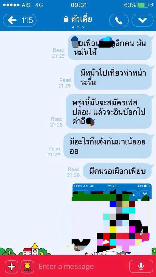 จนเดือนมิถุนายน 60 เราไปอยู่กับแฟน ฏ้มีเฟสปลอม มาด่าเราหน้าเฟส ว่า ร่าน มาหาผู้ชาย