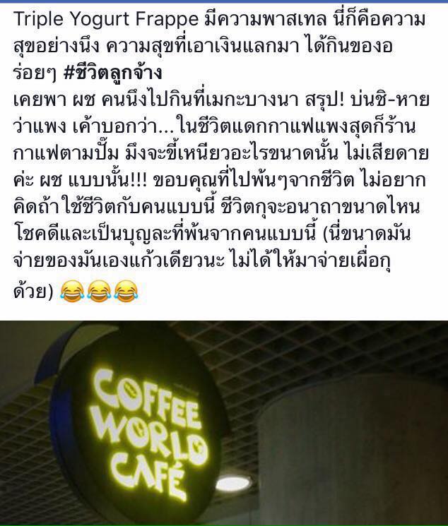 นางมีแฟนใหม่แล้ว แฟนนางก็ฐานะพอๆกับแฟนเรา นางโพสต์แบบนี้ไม่นึกถึงแฟนบ้างหรา เวลาเราไปกินอารัยกับแฟนเรา แฟนจะเป็นคนชวนไปกินโน้นนี่ตลอด เราต้องเบรค แฟนเราประหยัดเป็นบางเรื่อง ประหยัดเรื่องการใช้จ่าย เช่นกาแฟ แฟนเราจะกินในราคาที่เหมาะสม ไม่แพงมาก
