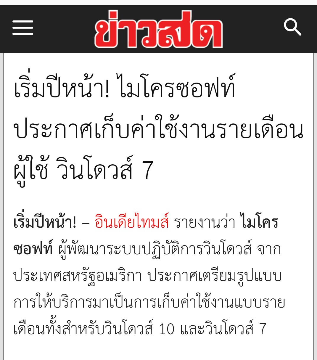 เริ่มปีหน้า! ไมโครซอฟท์ ประกาศเก็บค่าใช้งานรายเดือนผู้ใช้ วินโดวส์ 7 https://www.khaosod.co.th/around-the-world-news/news_1593111