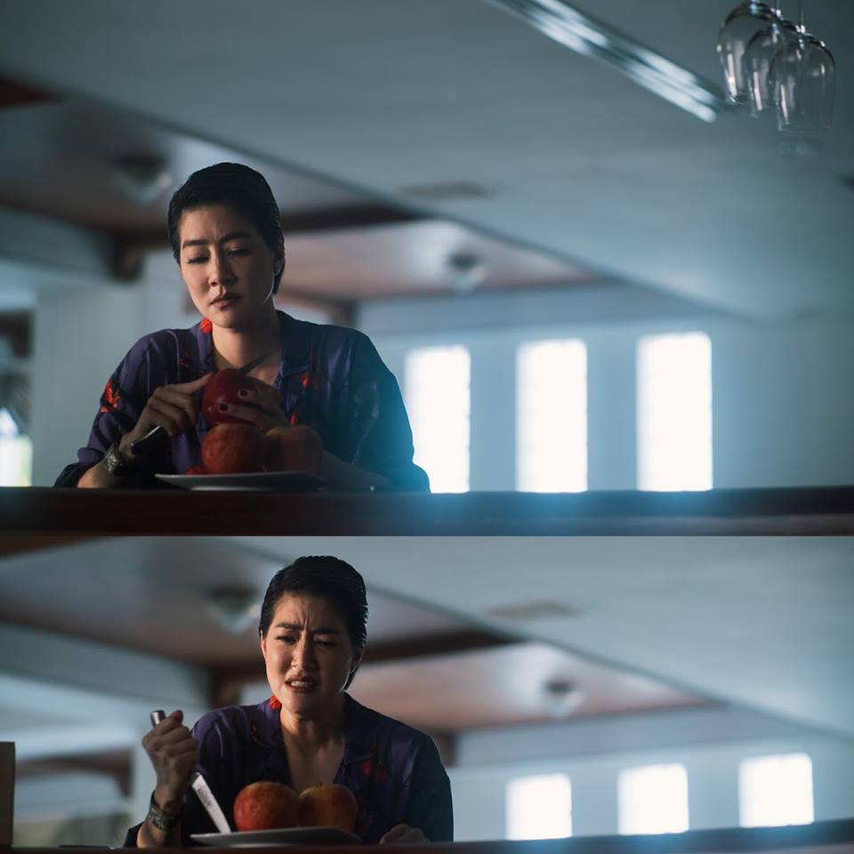 ว่ากันตามตรง พี่เจี๊ยบน่าจะไม่เคยปอกแอปเปิ้ลเลยในชีวิตจริง แต่เพื่อแสดงฉากนี้ให้ชัดเจนว่าปกติคริสเป็นคนที่ปอกแอปเปิ้ลแบบนี้อยู่บ้านจริงๆ พี่เจี๊ยบขอแอปเปิ้ลจากทีมอาร์ตมาซ้อมปอก และปักมีดไปเรื่อยๆ จนกว่าจะคล่องที่สุด เพื่อที่พอถ่ายจริง บิ๊วอารมณ์ขึ้นมาจริงแล้ว แอ็กชั่นเหล่านั้นจะไม่เป็นอุปสรรคที่ทำให้ต้องเทคใหม่ แอ๊บเปิ้ลทั้งสวนจึงได้ผ่านมือพี่เจี๊ยบไปในวันนั้นนนนน