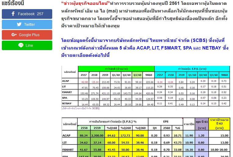 คัดแล้ว! 5 หุ้น mai ปี 61 ตัวท็อป เน้นกำไรโตต่อเนื่อง-อัพไซด์เพียบ โดย "ข่าวหุ้นธุรกิจออนไลน์ เมื่อวันที่ 28 ธค 2560"