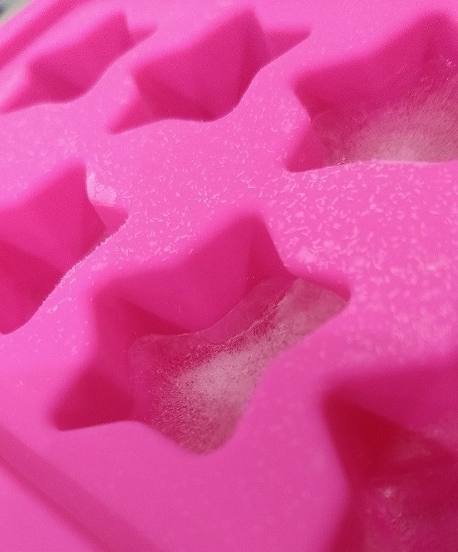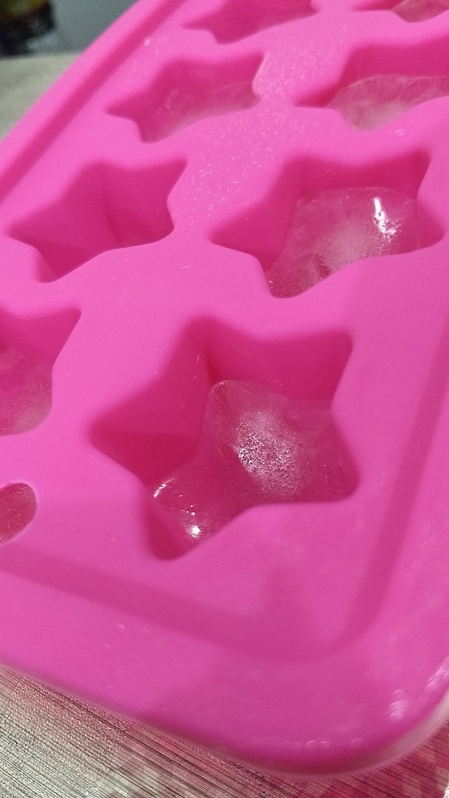 คือผมทำแข็งในที่ทำแข็งแช่ไว้ในช่องฟรีซ โดยใส่น้ำไว้เต็มช่องของถามทำน้ำแข็ง