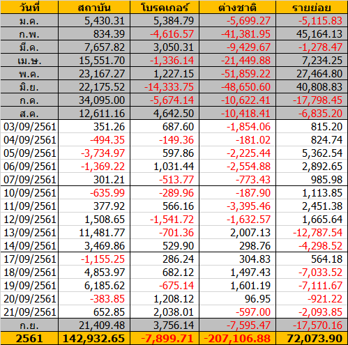 Sinthorn Sumamry 21/9/2561 : ต่างชาติขายสุทธิ -597.00 ลบ.