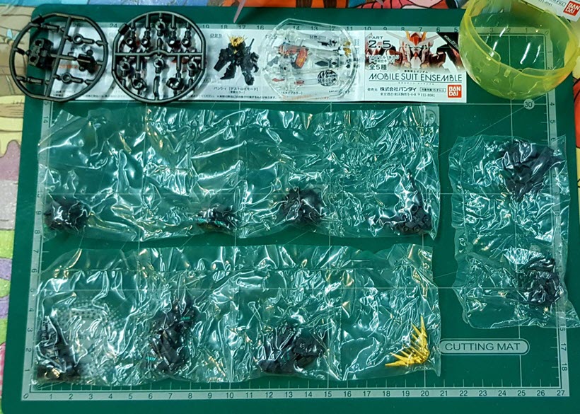 คราวนี้ผมนำกาชาปอง Mobile Suit Ensemble 2.5 จากค่าย Bandai มาให้เพื่อน ๆ ได้รับชมกันครับ โดยในชุดนี้มีผลิตทั้งชนิดแคปซูลหรือที่เราคุ้นเคยกับคำว่า "ไข่" โดยหมุนสุ่มเอาจากตู้กาชาปอง และแบบกล่องซึ่งก็ต้องสุ่มเหมือนกันว่าจะได้ตัวอะไรในกล่องเนื่องจากหน้ากล่องไม่ได้ระบุไว้ว่าเมื่อเปิดกล่องแล้วจะได้ตัวใด