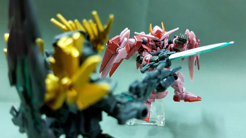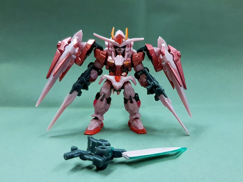 OO Gundam Trans-am การประกอบ และรายละเอียดเหมือนกันกับ OO Gundam ในชุด Mobile Suit Ensemble 02 ไม่มีอะไรต่างกันเลยครับ นอกจากสี ซึ่งสีในโหมด Trans-am นี้ดูสวยแปลกตาดีนะครับ