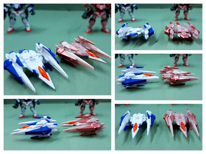 แคปซูลแต่ละลูกจะสีไม่ซ้ำกัน โดยวางเรียงลำดับตามหมายเลขตั้งแต่ 025 OO Gundam ไปจนถึง 027 ชุดอาวุธและพาร์ทเสริม