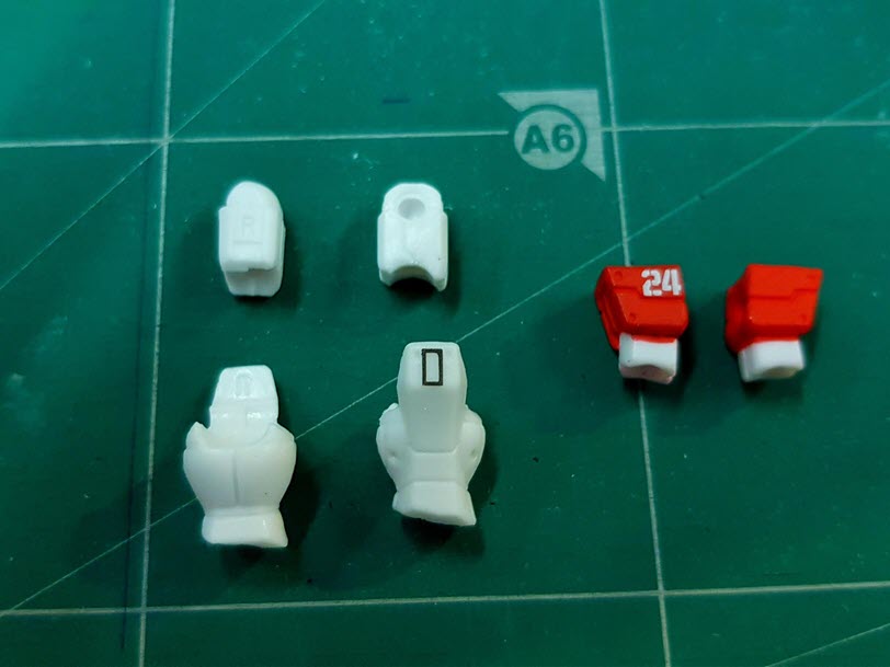 ชิ้นงานของ OO Gundam มีการแยกระหว่างข้างซ้าย และขวามาด้วยนะครับ โดยจะมีตัวอักษร "L" และ "R" กำกับไว้