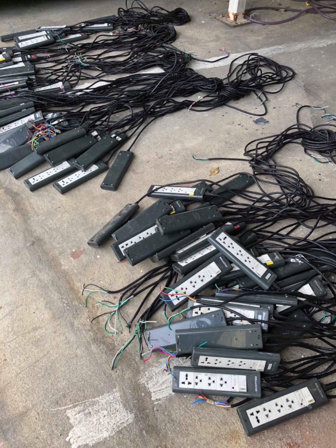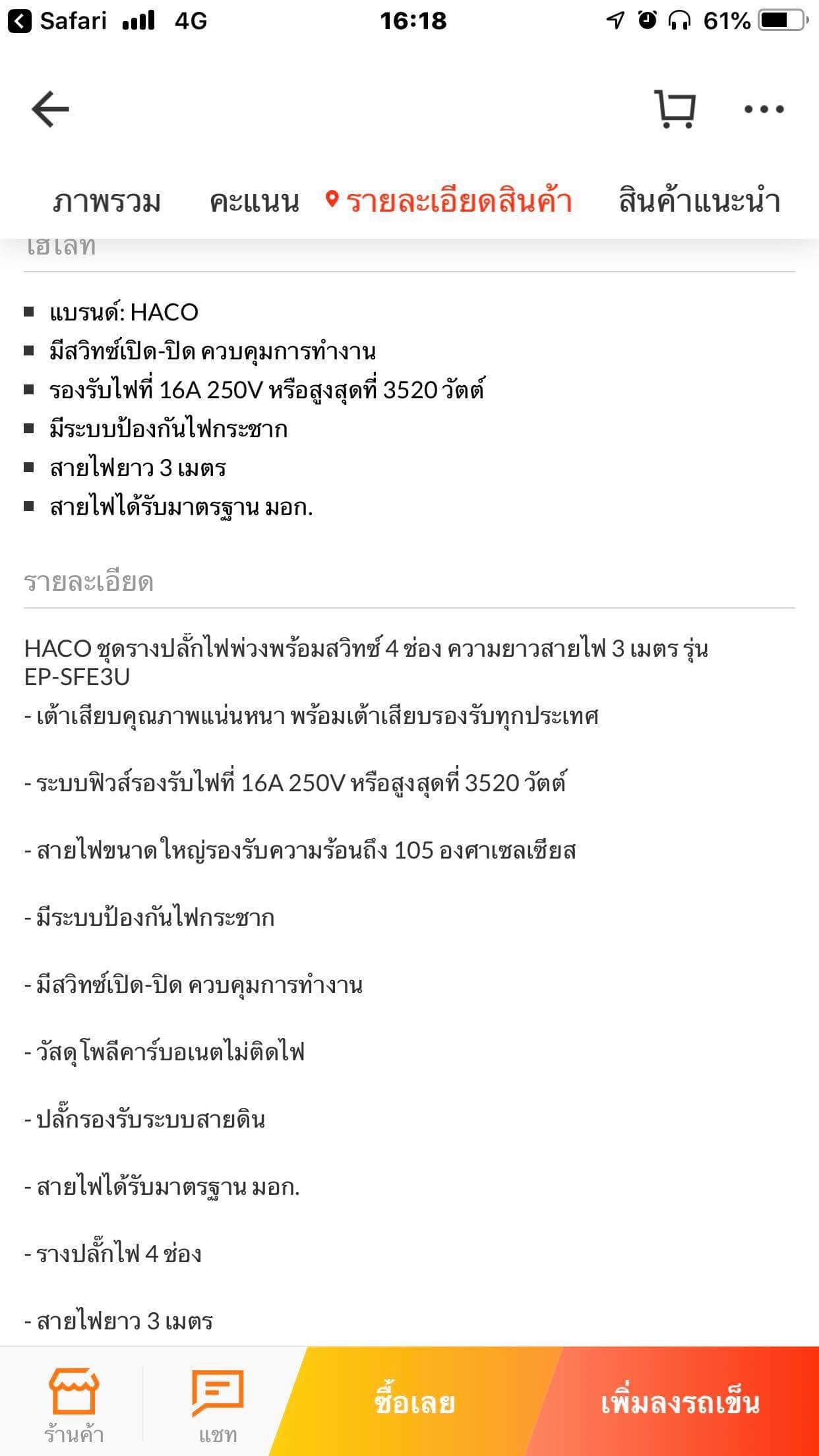 1.รางปลั๊กไฟ HACO สายยาว3เมตร ใช้งานได้ปกติ แต่ต้องเอาไปใส่หัวปลั๊กเอง (Homeproมีขาย. สายสีเขียวคือกราว มี 120 ตัว ขายตัวละ 150-.