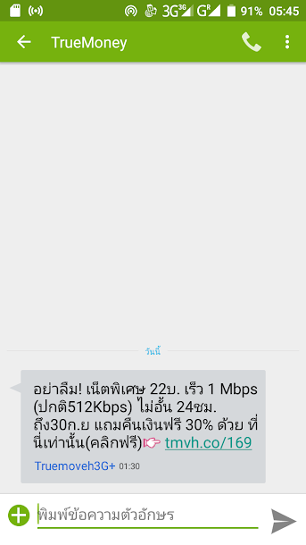 ฉะนั้น Truemoneyไม่ต้องส่งมาจะได้ไหมในเวลาพักผ่อน พวกข้อความประชาสัมพันธ์โปรเน็ตเนี่ยครับ(คนอื่นๆ ที่โดนในเวลาแบบนั้น ก็คงรำคาญเหมือนผมนั่นล่ะ)