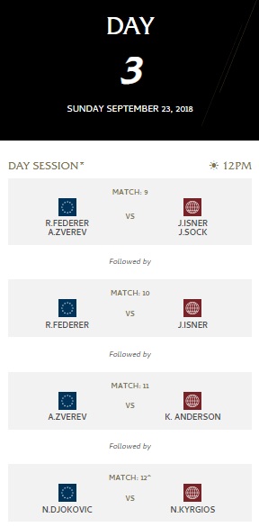โดยผลคู่แรกที่ Fed-Sasha Vs. Sock-Isner เป็นไปอย่างสูสีและต้องดวลยัน Super Tie-break ...ด้วยความนิ่งและฟอร์มที่กำลังมาของ Sock บวกกับความเป็น Teamwork ทำให้กลายเป็นการกดดัน Sasha จนเกิด UE ในแต้มเข้าได้เข้าเข็ม ...ก็ถือเป็นบทเรียนของ Sasha ไป