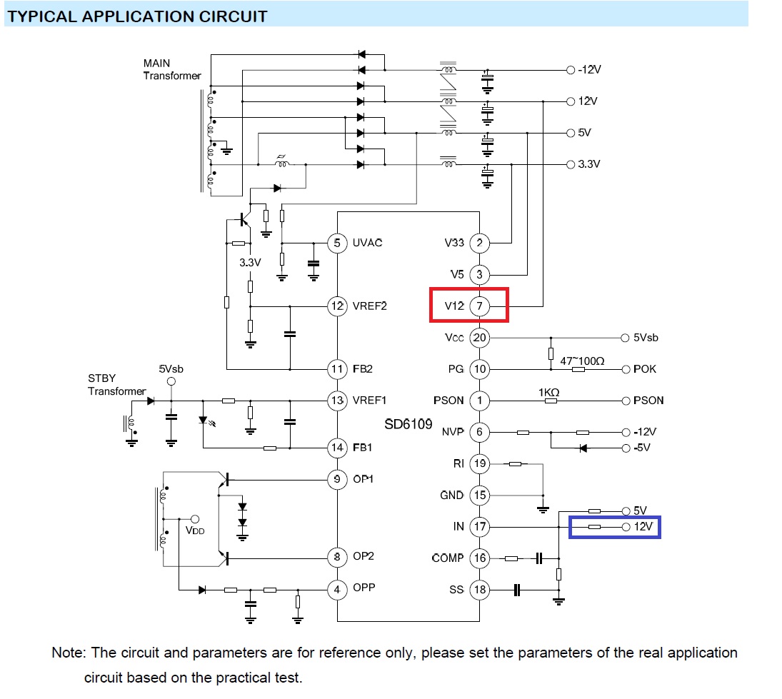 ผมได้โหลด Data sheet IC SD6109 ตัวควบคุมวงจรมาเปิดดูแล้วไล่วงจรเพื่อปรับไฟ