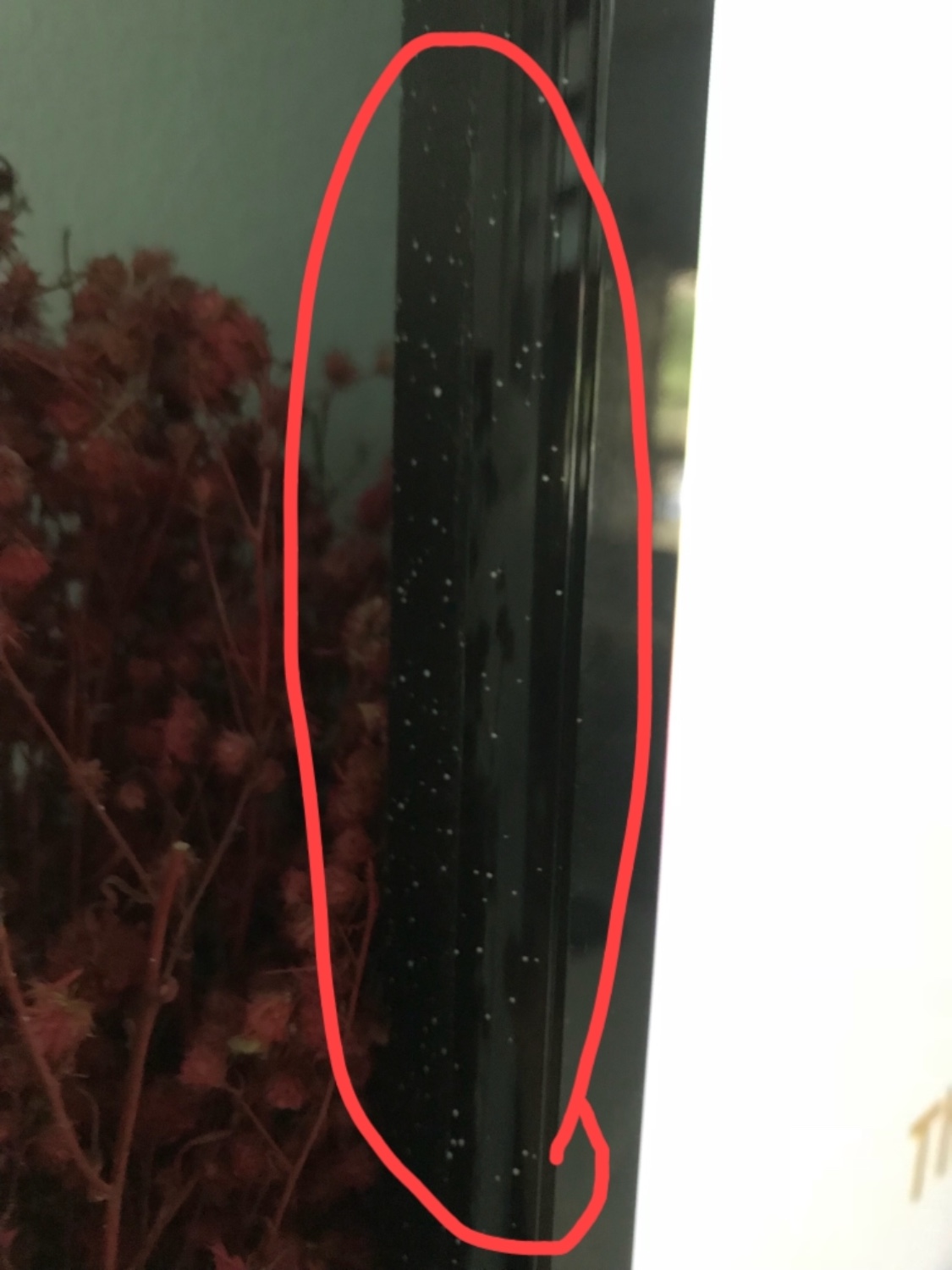 อย่างที่เห็รในรูปคือด้านข้างของทีวีติดพนังครับ ยังมีชั้นไม้อีกนิดหน่อยที่มีรอยขาวๆจุดๆแบบนี้