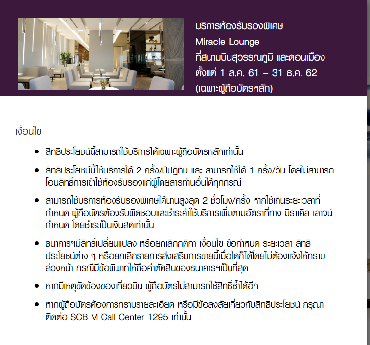 เลยไม่แน่ใจว่าใช้ SCB M Luxe ที่ Miracle Lounge ได้เฉพาะที่สุวรรณภูมิหรือใช้ไม่ได้เลย