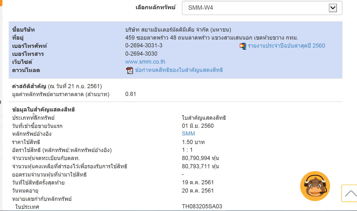 SMM-W4 & SPALI-W4 : ซื้อขายวันสุดท้าย 25/9/2561 (พรุ่งนี้)