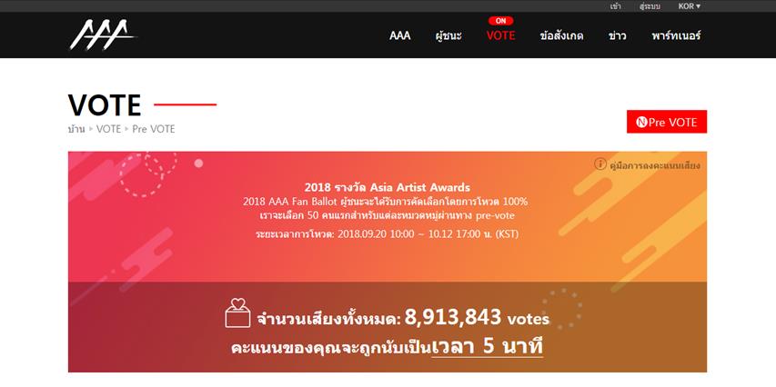 https://www.asiaartistawards.com/vote/preVote.html#none เราใช้โปรแกรม Chrome โหวตจ้า
