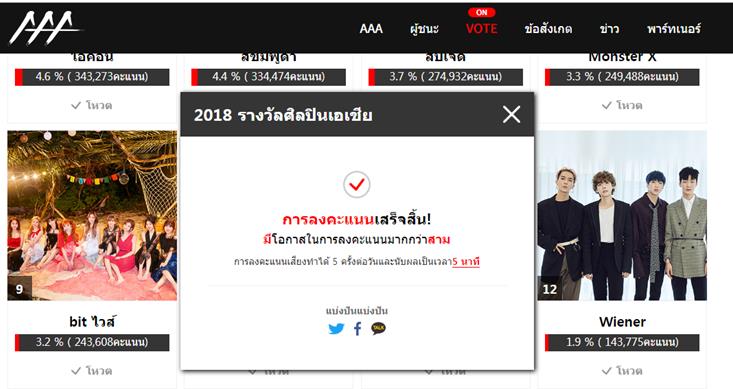 จบแล้วสำหรับ 1 ไอดีที่สามารถโหวตได้ถึง 5 ครั้งต่อวันจ้า
