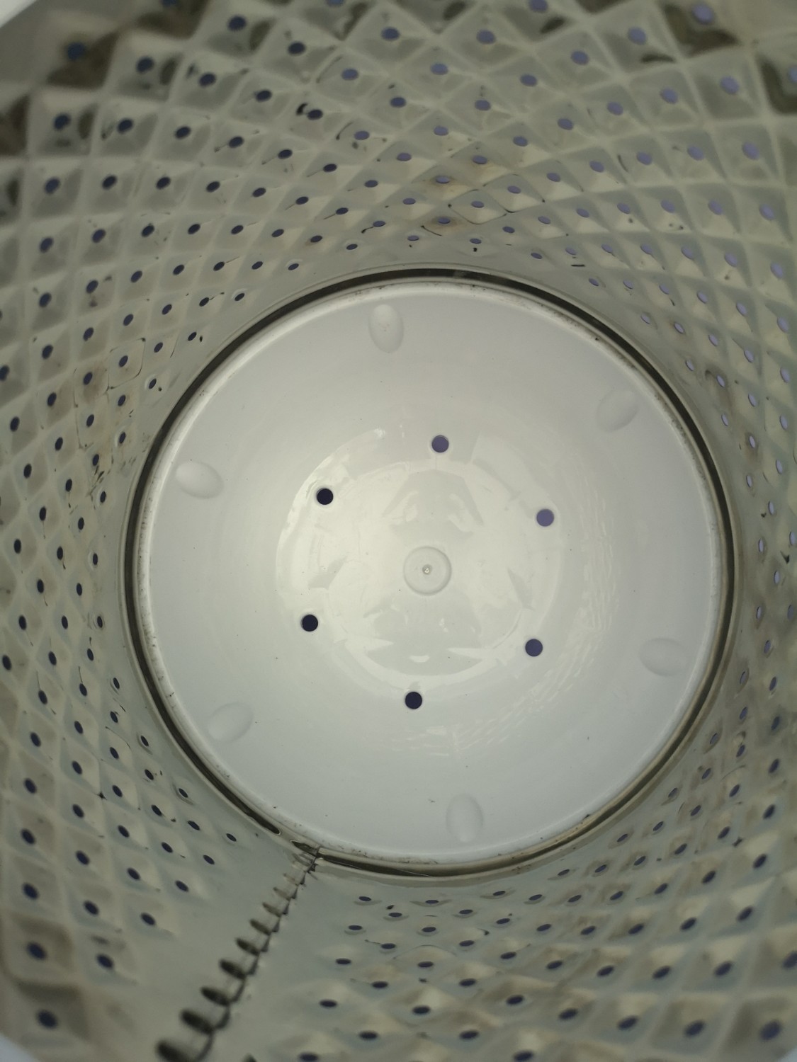 ต่อมาเจอด้านในถังซักทั้งซ้าย และ ระบบปั่นหมาดทั้งตัวถังและฝาปิด ในใจคิดแล้วว่าโดนย้อมแมว