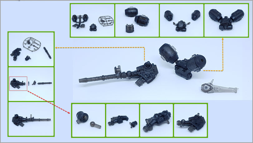 ลำดับต่อมาก็เป็นการประกอบส่วนแบ็กแพ็ค อาวุธปืนยาวที่ต่อกับส่วนแบ็กแพ็ค (Lange Bruno gun) มีกลไกการประกอบอยู่บ้างครับ พอประมาน 😉