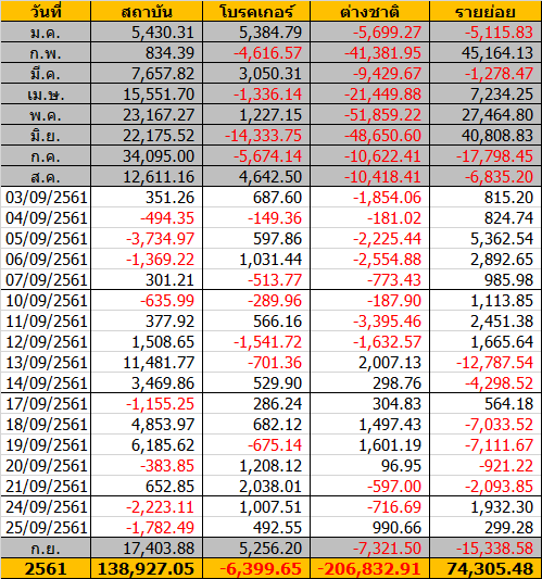 Sinthorn Summary 25/9/2561 : ต่างชาติซื้อสุทธิ 990.66 ลบ.