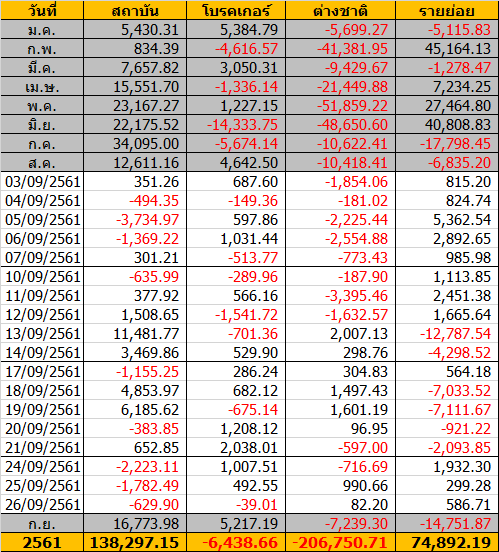 Sinthorn Sumamry 26/9/2561 : ต่างชาติซื้อสุทธิ 82.20 ลบ.