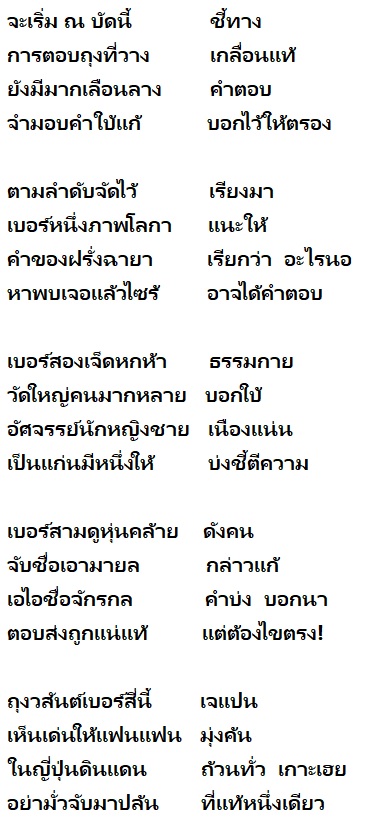 ***** เฉลยคำตอบ เช้าวันเสาร์ เวลา 9 นาฬิกา ***** ประกาศผลการแข่งขันและผู้ได้เป็นมือวางเกมสุดท้าย วันอาทิตย์ ครับ *****