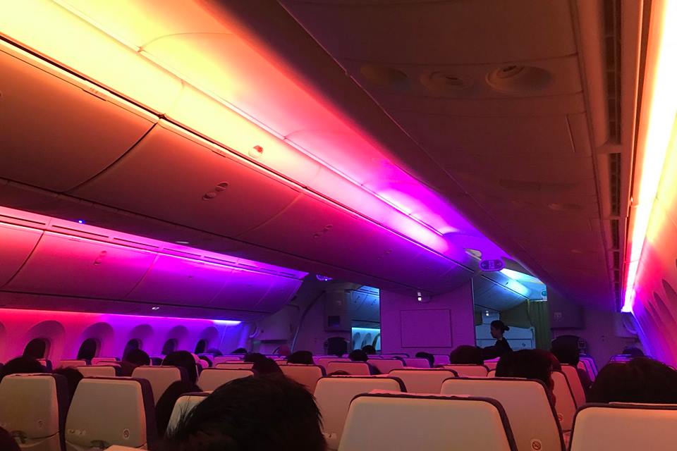 พร้อมออกเดินทางสู่ Singapore ไม่ดีเลย์เลย ปลาบปลื้มใจ ^^ ตรงเวลาเป๊ะ เย้!!! ขึ้นเครื่องมา ใหญ่มาก ใช้เครื่อง Boeing ใหญ่ จัดที่นั่ง 3-3-3 ประจำที่ ออกเดินทาง เครื่องขึ้นได้แปลบนึง จะนอนแล้ว ดันโชคร้ายคนข้างหลังคุยกันตลอดเวลาเสียงดังอีก นอนไม่หลับ TT อยากจะหันไปบอกรบกวนคุยกันเบาเบาได้ไหมคะ ไม่อยากรู้ด้วย 555+ แต่กลัวโดนตบเลยทนนอนฟังต่อไป ประกอบกลับขายอาหาร ขายของ เปิดไฟแบบเล่นสี โอเคไม่นอนก็ได้