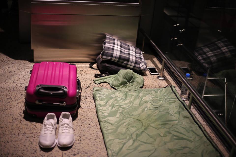 หาที่นอนกัน กะว่าจะไปนอนแถวรถไฟฟัาใต้ดิน เห็นเพื่อนนอนกันเพียบ เอาตรงนี้แหละ ปูผ้าและนอน นอนไงก็นอนไม่หลับ ไม่นอนมันเลยแล้วกัน นั่งคอยจนเกือบ ตีห้าลุกไปเปลี่ยนเสื้อผ้า ล้างหน้าล้างตาทำให้ตัวเองสดชื่น