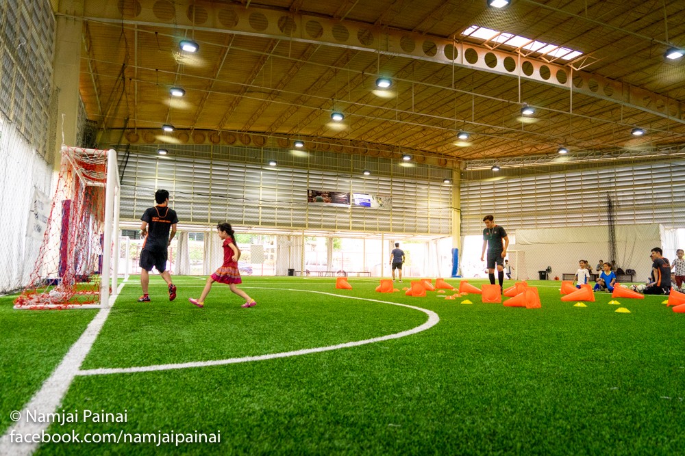 สนามมี 3 สนามอยู่ในร่มทั้งหมด จะเป็นสนามเล็ก 1 สนาม มีตาข่ายกันอย่างดี เป็นหญ้าเทียมทั้งหมด