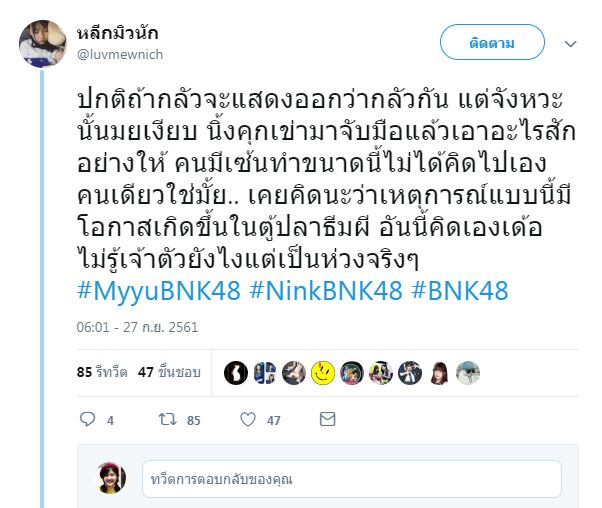 งานจับมือ มีแฟนคลับคนไหนพูดให้กำลังใจหรือทำอะไรซึ้งๆให้เมมเบอร์ร้องไห้ไหม
