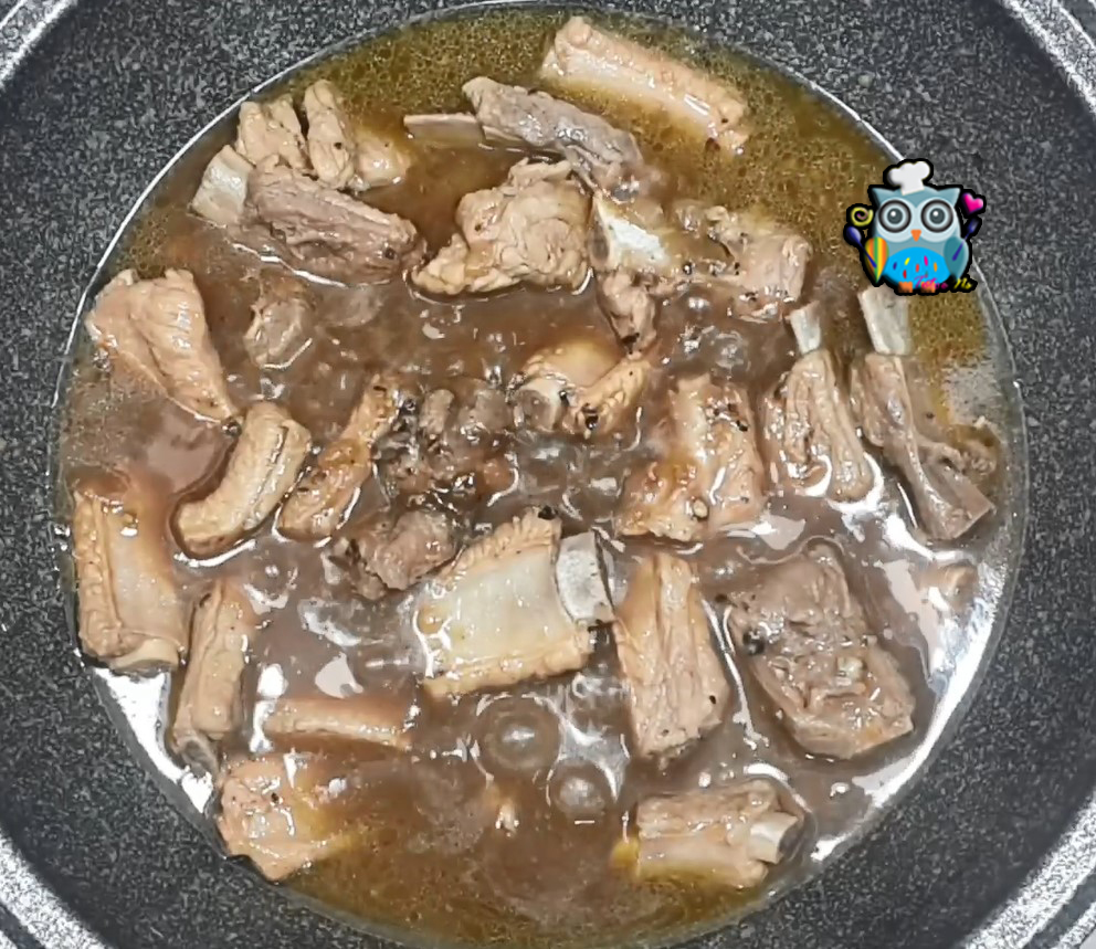 6.เปิดฝาชิมรสชาติตามชอบ ดูว่ากระดูกหมูเปื่อยพอดีแล้ว ปิดไฟได้