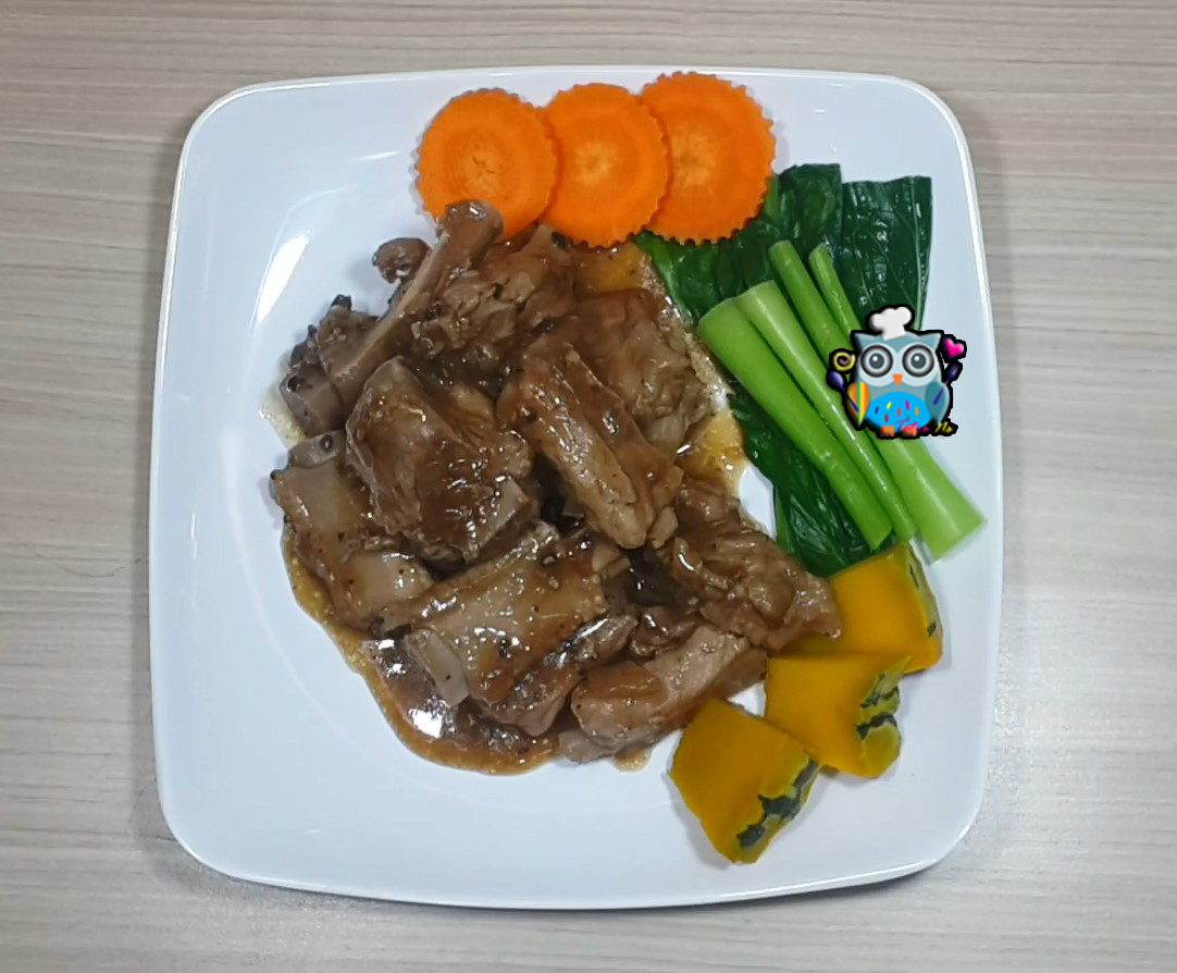 กระดูกหมูอบเนยกระเทียมพริกไทยดำ