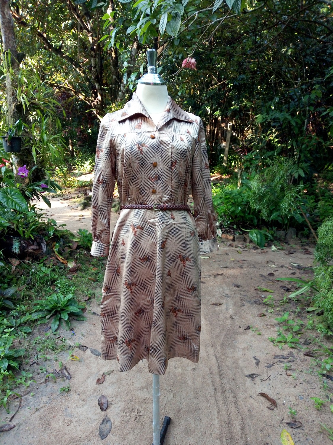 ตัวแรกเดรสสีน้ำตาลทอง สวยใหม่มากค่ะ ซับในทั้งตัว 150 บาทค่ะ
