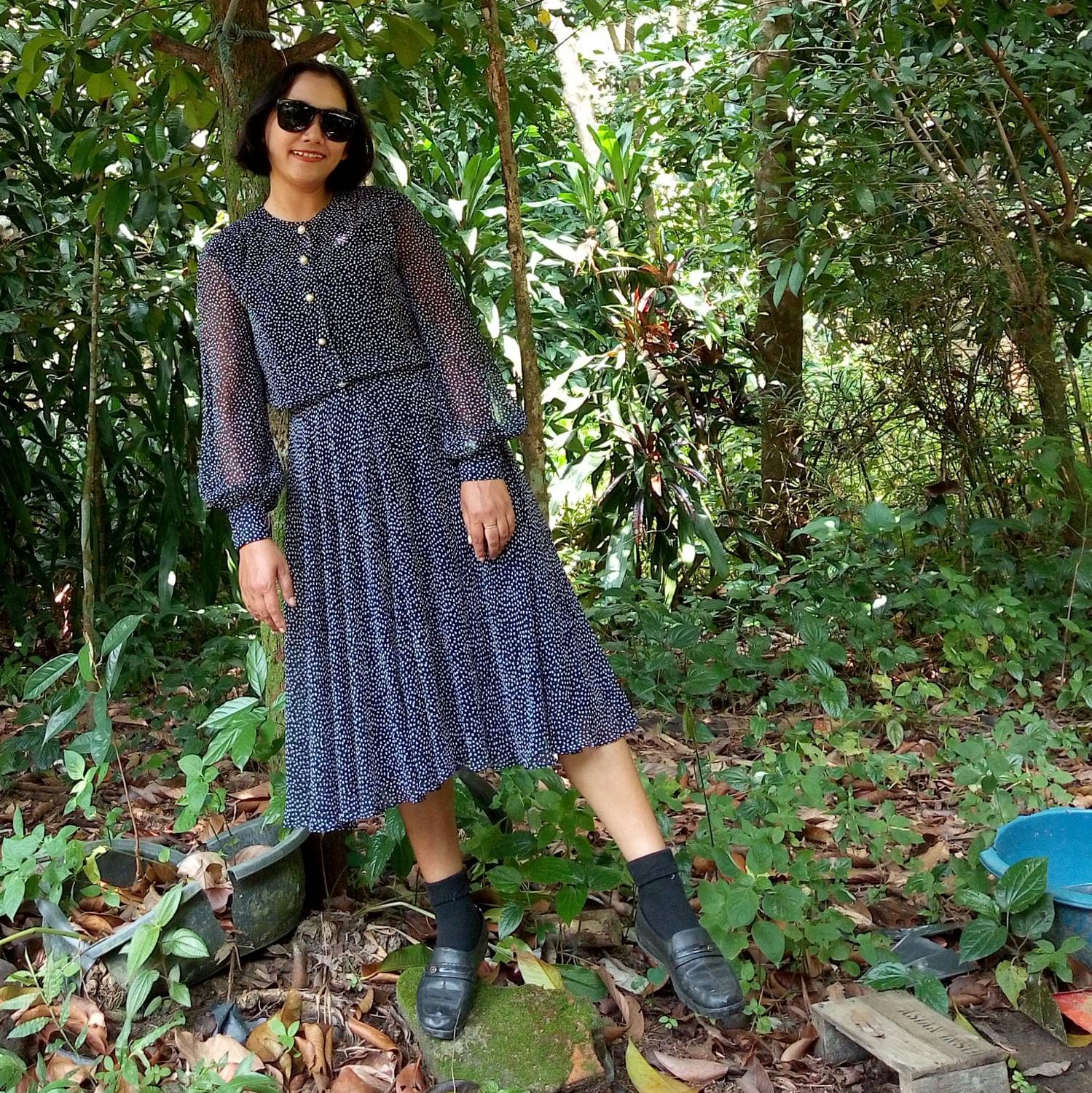 ตัวที่สอง เดรสชีฟองสีน้ำเงิน ชีฟองเนื้อดีทิ้งตัวค่ะ ซับในทั้งตัวยกเว้นแขน 150 บาทค่ะ