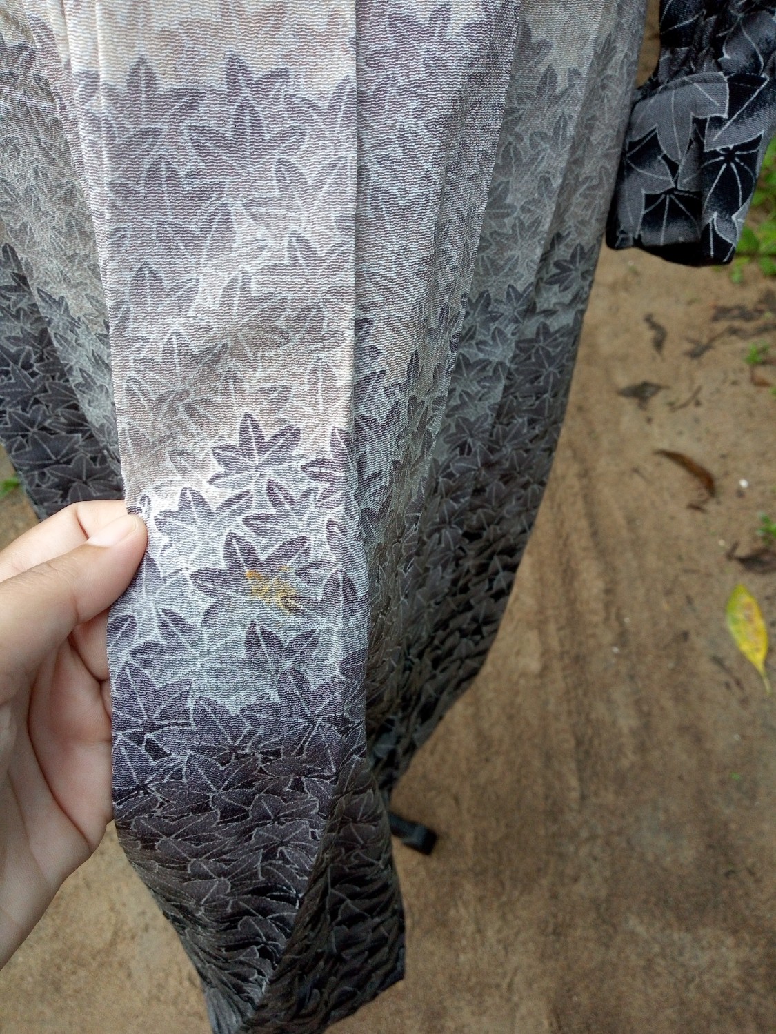 ตัวที่สาม เดรสไล่เฉดสวยค่ะ ไม่มีซับในแต่ผ้าไม่บาง มีรอยเปื้อนนิดนึงที่กระโปรง (ตามรูป) แต่คิดว่าน่าจะซักออก 150 บาทค่ะ