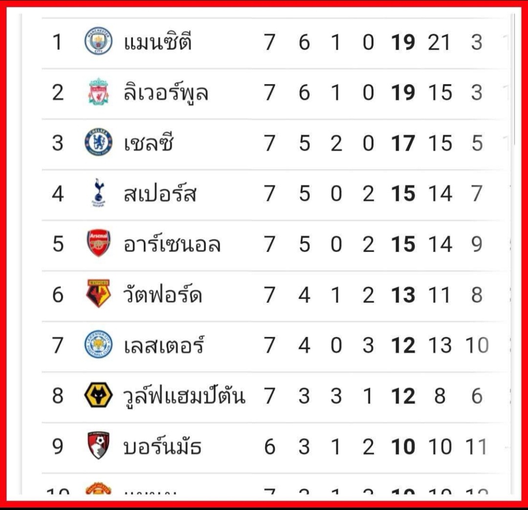 ตารางคะแนน พรีเมียร์ลีค ล่าสุด เหลือเพียง 3 ทีม ยังไม่แพ้ใคร!!