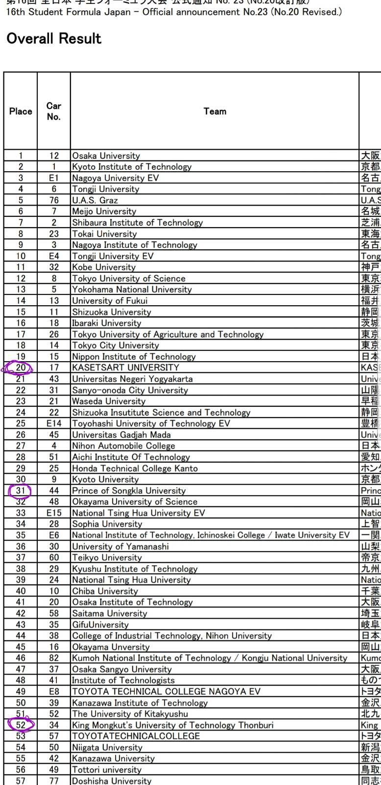 ผลการแข่งขัน Student Formula Student Formula Japan 2018