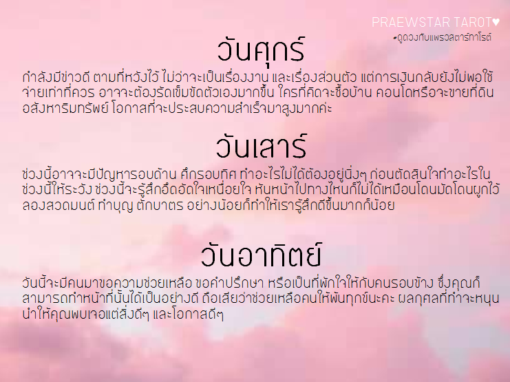 ขอบคุณมากค่ะ♥ - กดให้คะแนนเป็นกำลังใจให้แพรวด้วยน๊าาาา ( Share ด้วยก็ดีเด้อ อิอิ) - ดวงประจำสัปดาห์จะพยายามมาทุกสัปดาห์ให้ได้ - ส่วนดวงประจำวันอาจจะมาแบบหนูตุ่น