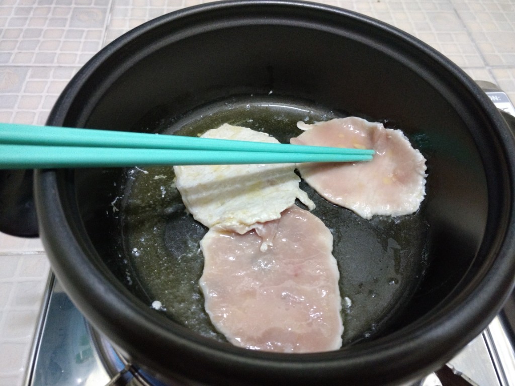 โดยขั้นแรกนั้นให้นำเนยลงก่อนแล้วนำเนื้อหมูลงไปผัดให้พอสุกได้