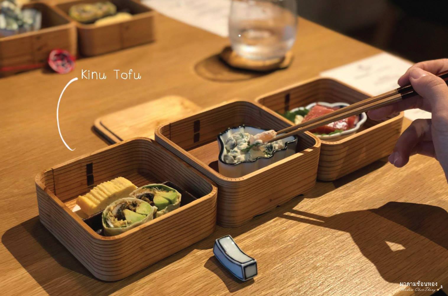 🏅🇯🇵🎌โอมากาเสะที่นี่ เต้าหู้จะเป็นณเดช(พระเอก)หลักร่วมกับวัตถุดิบพรีเมี่ยมอื่นๆ ที่คัดสรรมาแล้วไม่ว่าจะเป็นเนื้อวัว เกรด A5 จากเมืองโกเบ ปูยักษ์จากฮอกไกโด ปลา Alamutsu และไข่หอยเม่น วัตถุดิบทุกอย่าง รวมทั้งเต้าหู้สั่งตรงมาจากญี่ปุ่นทั้งหมด โอ๊ยเริ่ด!!