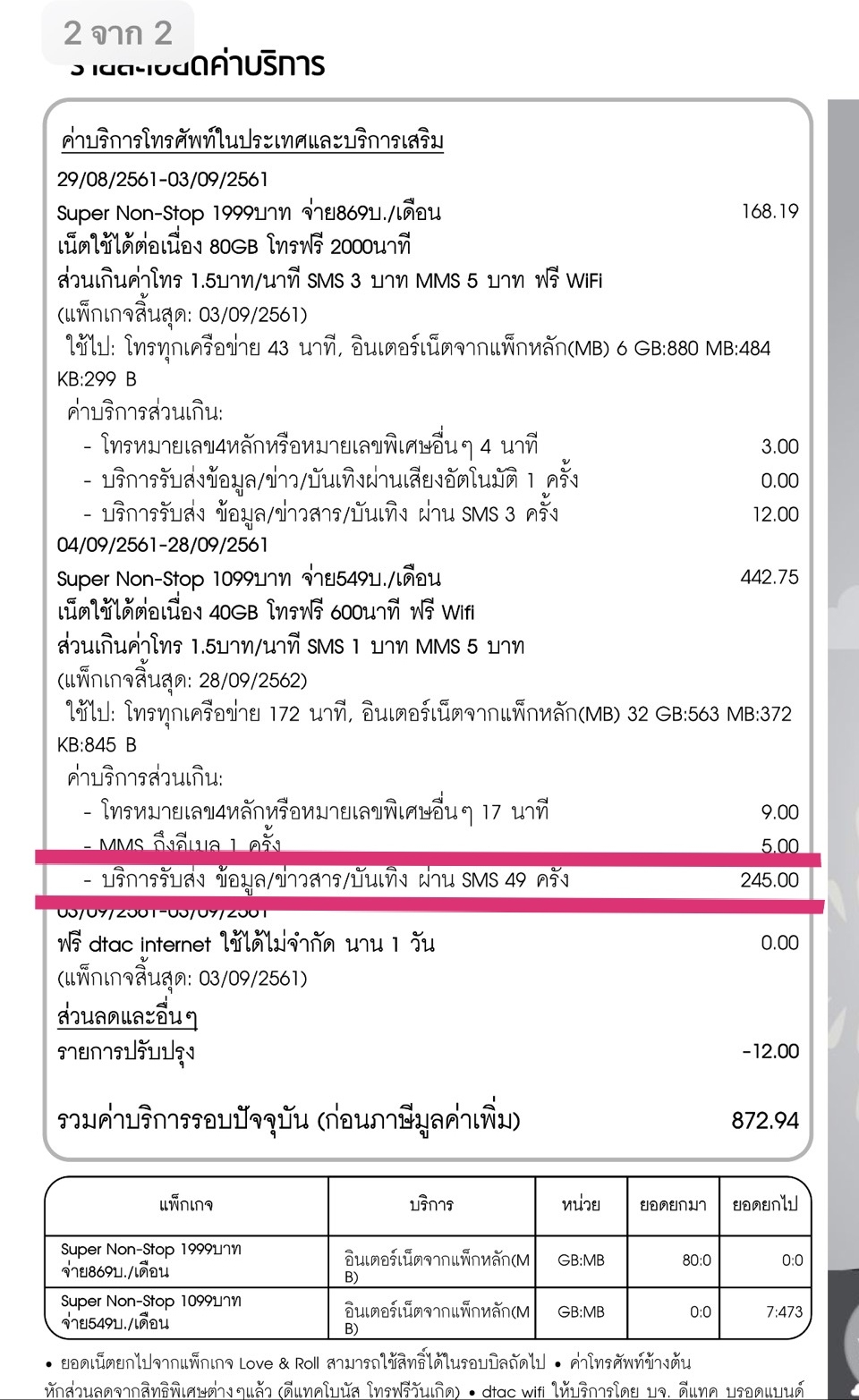 ค่าบริการทุกอย่างรู้ที่มาที่ไป เราโอเค เพราะเรามีการเปลี่ยนโปรระหว่างรอบบิล ตอนแรกอุส่าจะย้ายค่าย เสนอโปรมาอยู่ต่อ แล้วมาทำกันแบบนี้นี่นะ คุยกันหนก่อนบอกว่าจะไม่ที SMSขยะๆเหล่า แต่ก็มีจนได้ ทำไมหรือคะ ต้องการคอมมิชชั่นขนาดนั้นเลยหรอ รบกวนดังนี้เลย